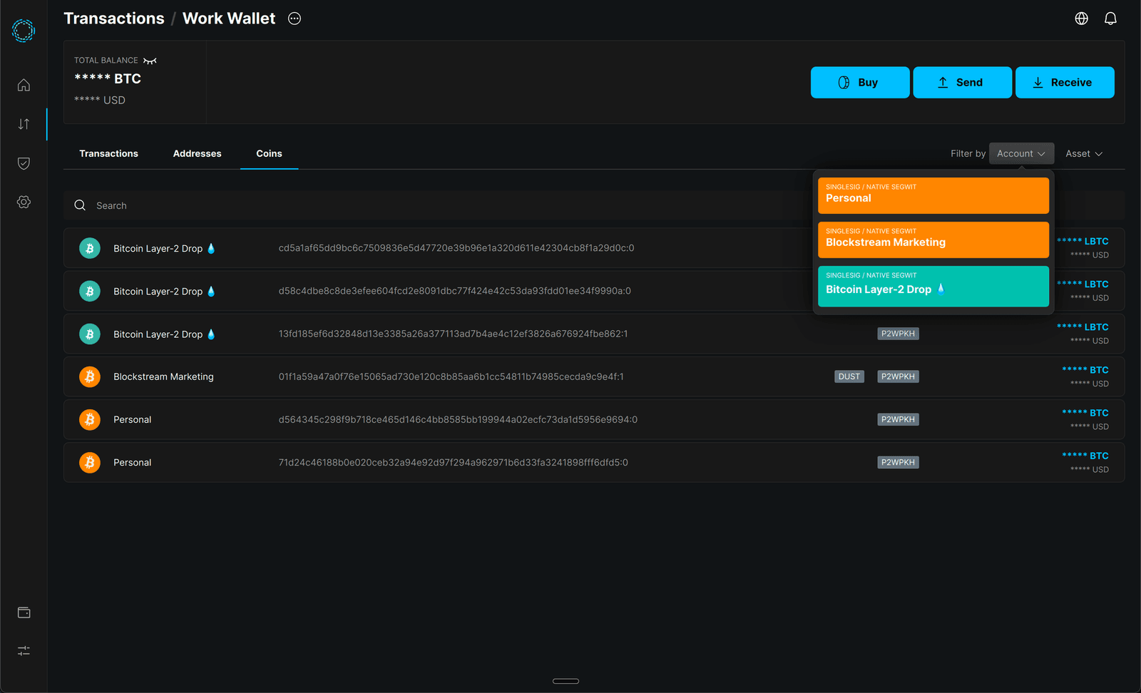 - Improved account and asset selectors make it clear where bitcoin is moving.