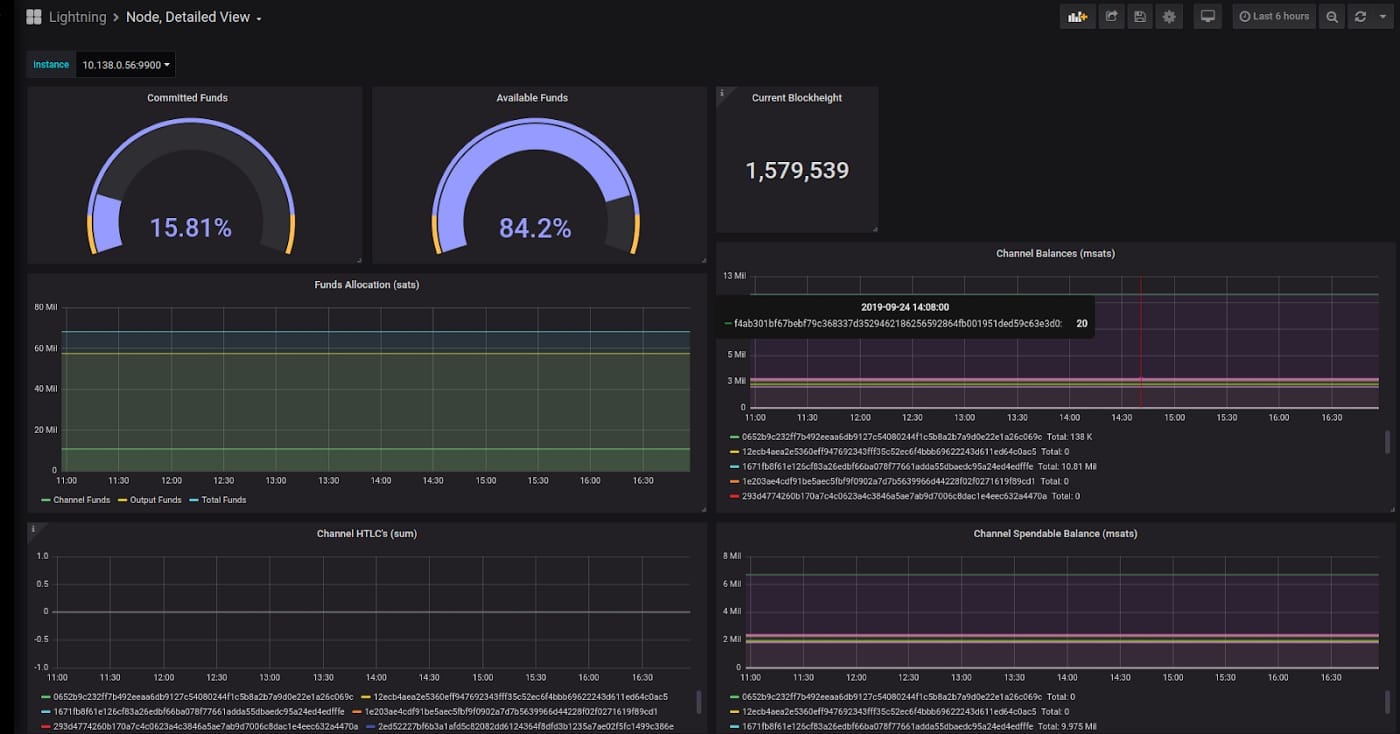 At Blockstream we run a number of production Lightning nodes, most notably the Blockstream Store and the payment system for the Blockstream Satellite. By plugging in our node stats in Prometheus and Grafana, we have visibility into our production systems and timely alerts for system problems.