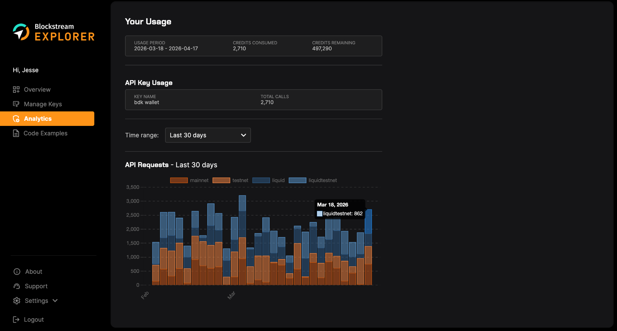 - Visual charts separating Bitcoin mainnet and Liquid Network requests